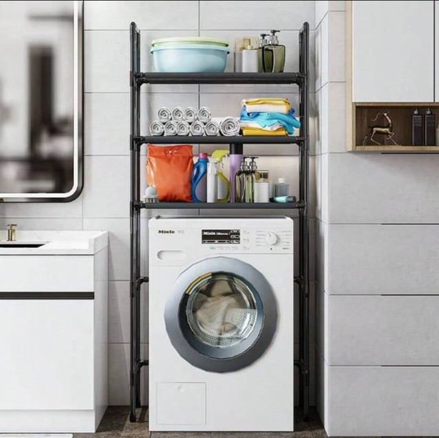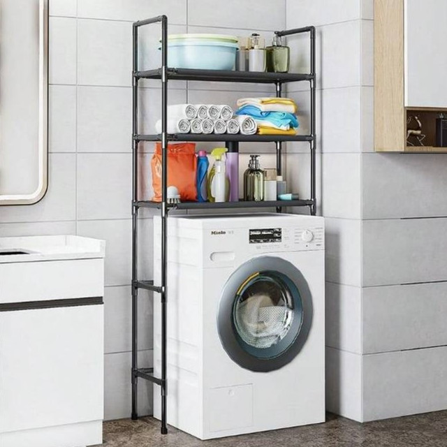 | Тип призначення: | Стелаж-стійка металева над стеральною машинкою на 3 полиці для ванної кімнати для речей і рушників Чорний Shelf Above |