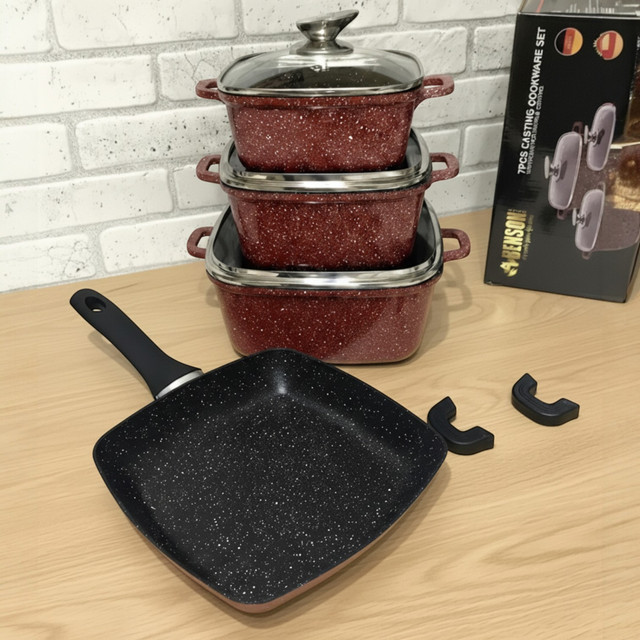 Набір квадратних кастрюль і сковорода 7 в 1 гранітне антипригарне покриття з прозорими кришками для приготування їжі Benson