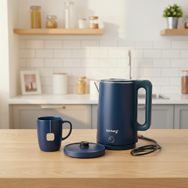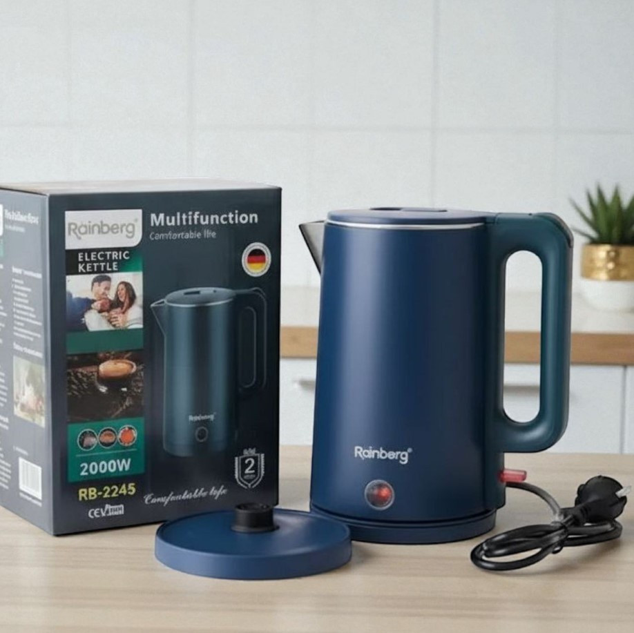 Чайник електричний на 2 л з автовимкненням 2000 Вт міцний корпус із нержавіючої сталі та підставкою електрочайник Темно-синій Rainberg